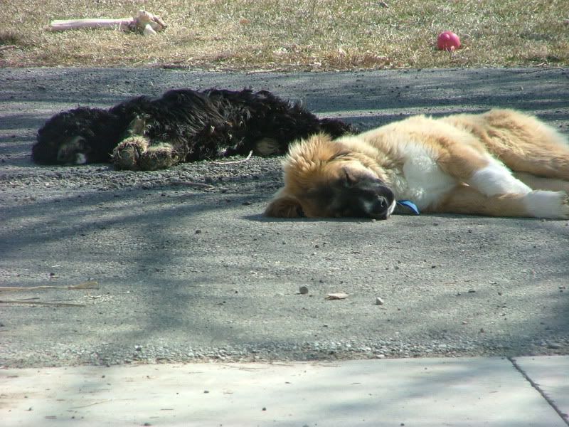 Awwww. Gee, guess you continue to have *really* nice weather! Barefoot *and* the hose...jealous.Um, you're not getting attached to that soon-to-be-giant new pup, are you? :-)He's awful cute.