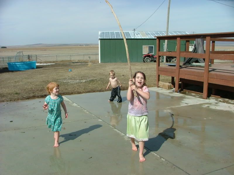Awwww. Gee, guess you continue to have *really* nice weather! Barefoot *and* the hose...jealous.
