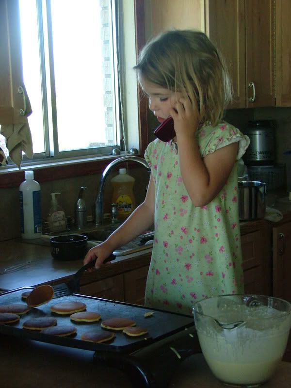 Yesterday morning, when Hannah was making pancakes, she asked for help flipping some of the smaller pancakes. This is what I saw when I looked at the grill.