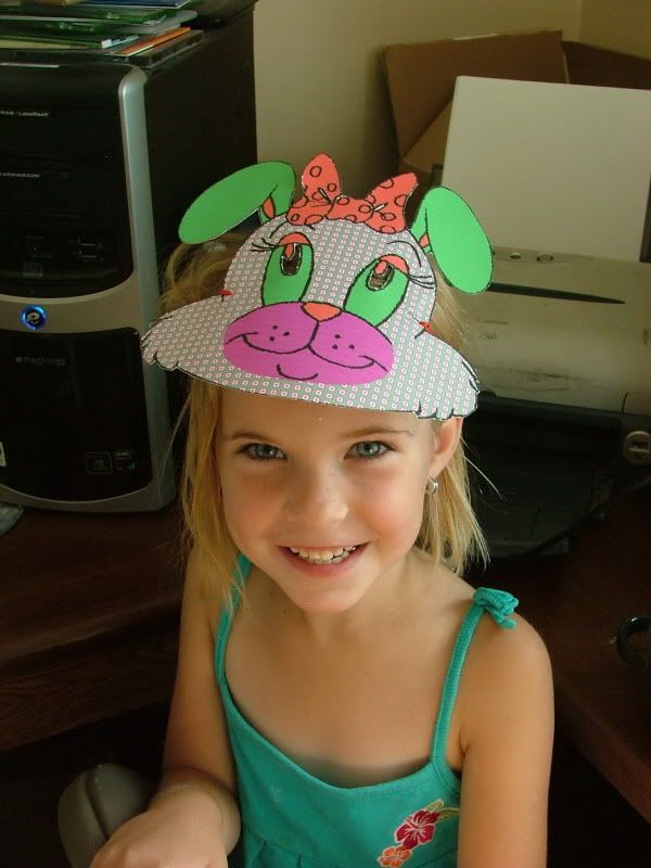-Ainsley asked me to put this hat (scroll down to the debutante picture) - all pink and fur and ribbons - on Cygnus. I did and between giggles she said "He looks like a poodle!" It made me laugh because I don't think she's ever in her two-and-a-half years on this earth seen a real live poodle. She recently asked for a poodle book from the library and she went through it, but I don't recall more than a few of the poodles in the book being dressed up fancy.