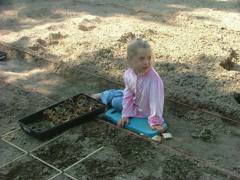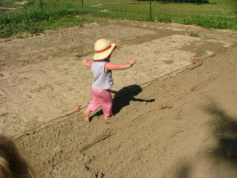 Ainsley playing in garden before the next bed is made.