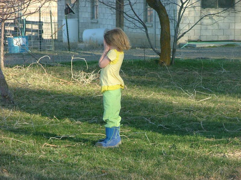 (Please don't tell her that's not a pool. I think Hannah's figured it out, but Ains is still thrilled with her little 'pool'.)Hannah and I stopped to look at birds in our huge pine tree.