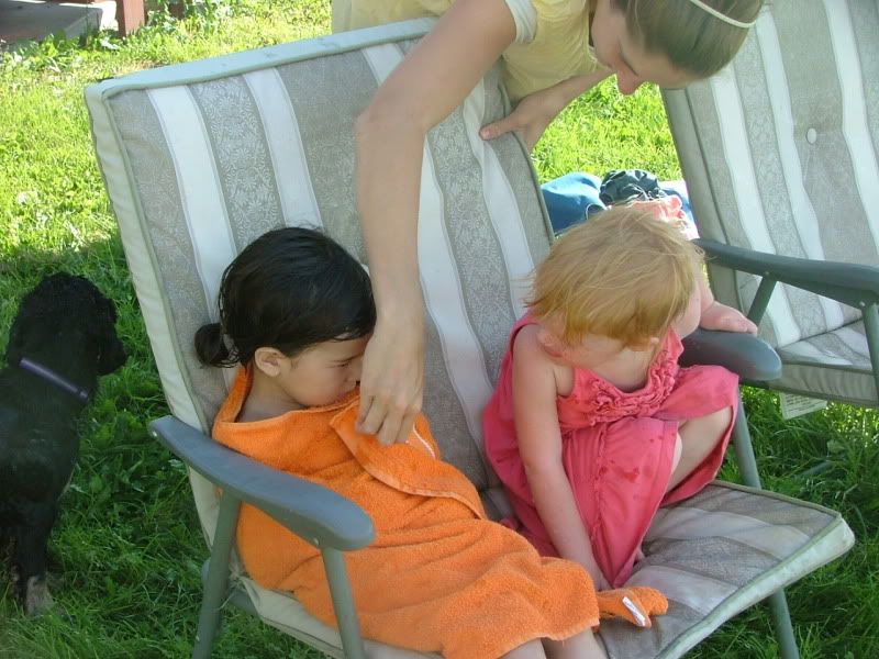 When we got home, the pool had warmed up nicely, so there was pool play - it's a daily occurence with this bigger pool.