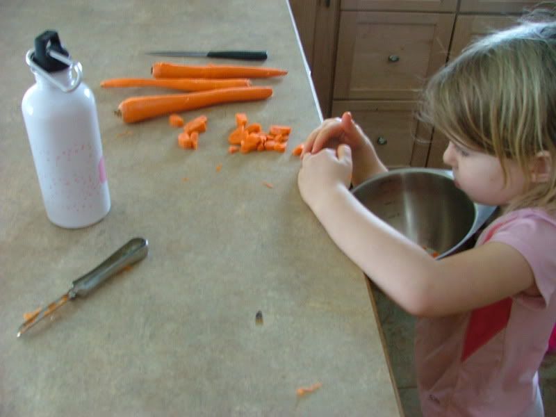 To one of these we added carrot peels and to the other we added a small piece of plastic bag. Actually, a piece of one of the plastic bags that the peat moss came in. Hannah has predicted that at the end of the week, when we check on them, the carrot peels will still be there and the plastic bag will be decomposing. This should be interesting.
